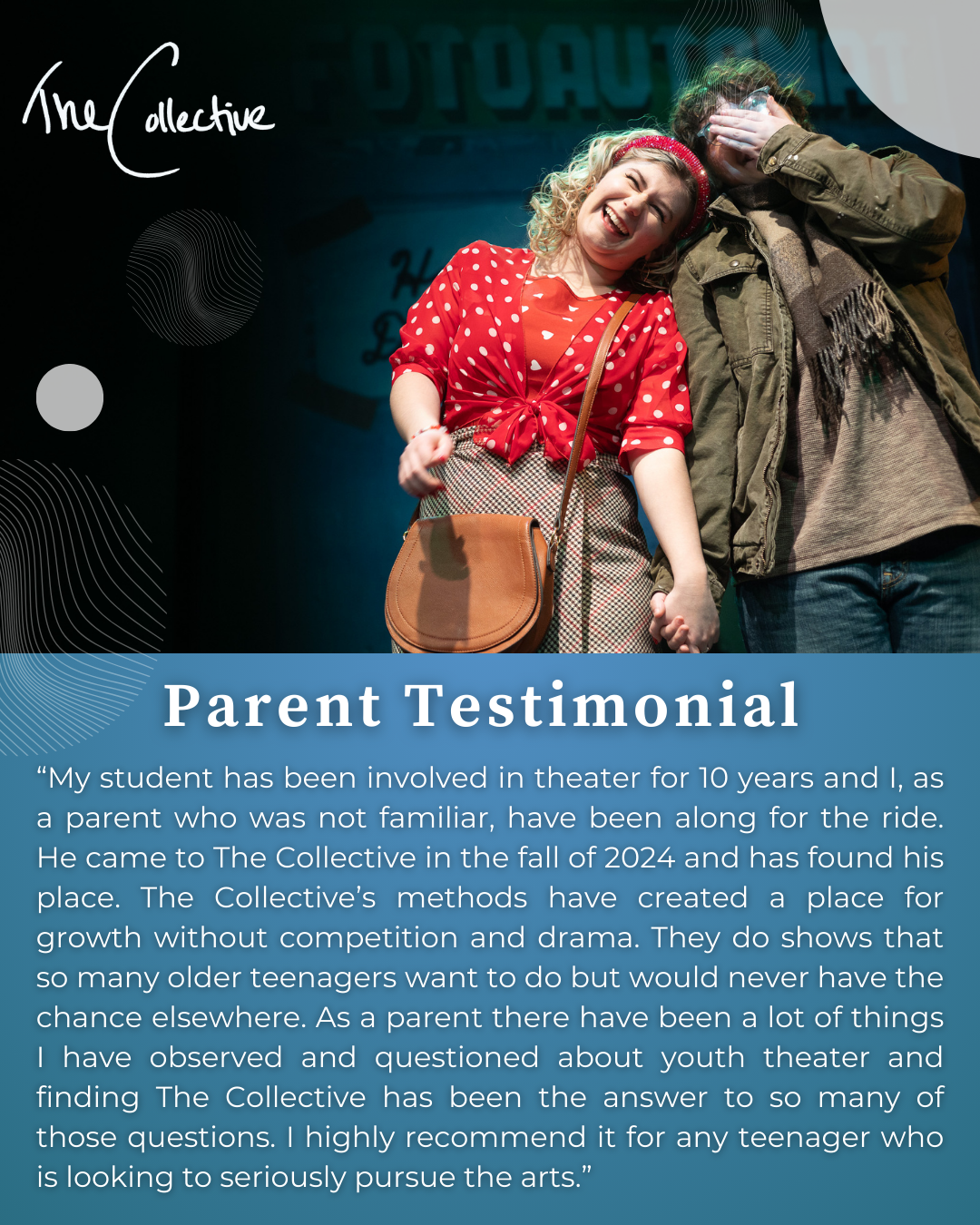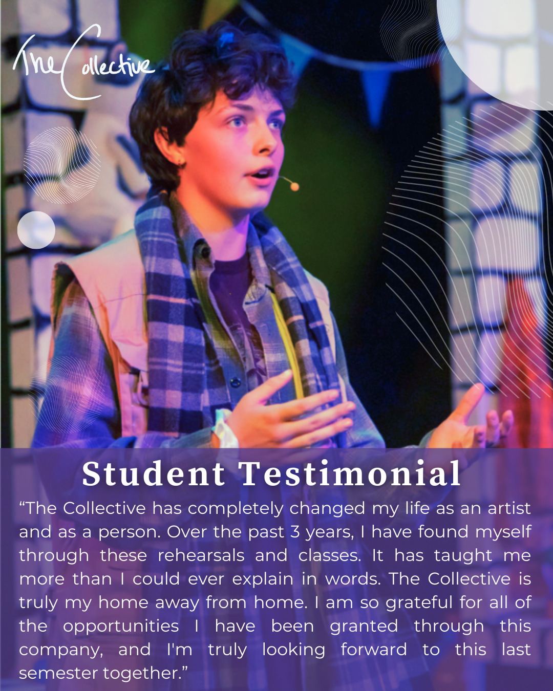 The Collective is a pre professional training academy founded by Broadway’s Michael Campayno (Wicked, The Cher Show, Sound of Music LIVE, The Other Two HBO, BFA Carnegie Mellon) for high school students, gap year students, to young pre professionals. We hold several different courses through out the semester, challenging high school students with collegiate level training and mentorship.